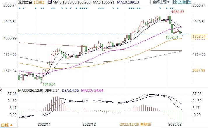 北京时间2月10日14:56,现货黄金报1858.06美元/盎司