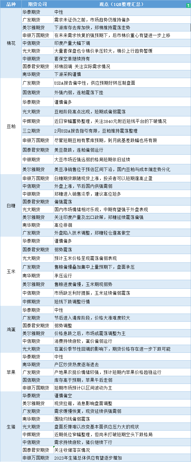 期货公司观点汇总一张图:2月10日农产品(棉花、豆粕、白糖、玉米、鸡蛋、生猪等)