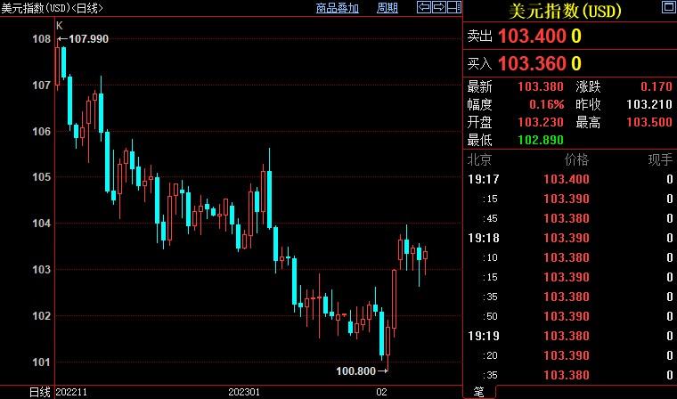 美元指数创1月6日以来新高至103.967,但本周累计升幅不到0.4%,上周涨幅逾1%。投资者在下周美国通胀数据公布前谨慎行事,对经济放缓和美联储升息步伐的担忧打击市场人气。