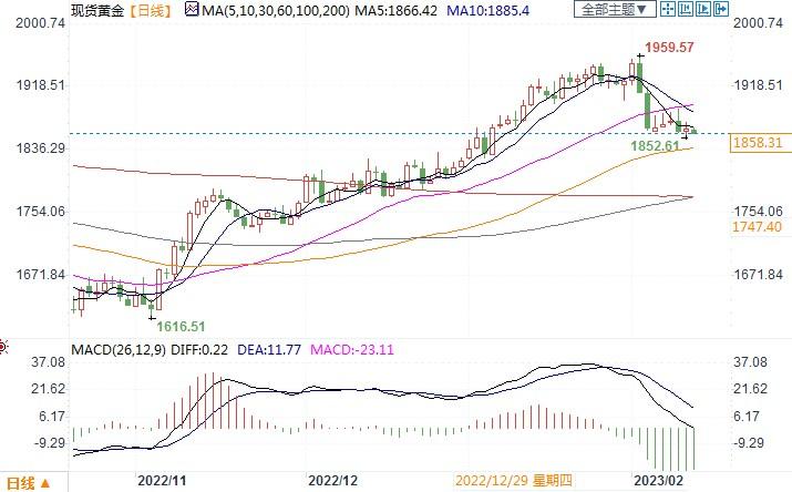 北京时间2月13日12:21 现货黄金 报 1858.31 美元/盎司