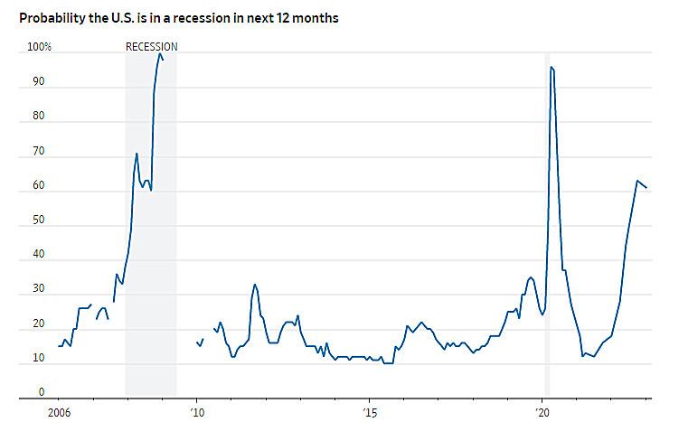 高盛经济学家上周已表示,他们现在认为未来12个月经济出现衰退的可能性仅为25%,低于此前估计的35%。该行预计,只要经济增速低于2%左右的长期趋势,今年的通胀率仍将有望降至3%,失业率将小幅上升至4%。