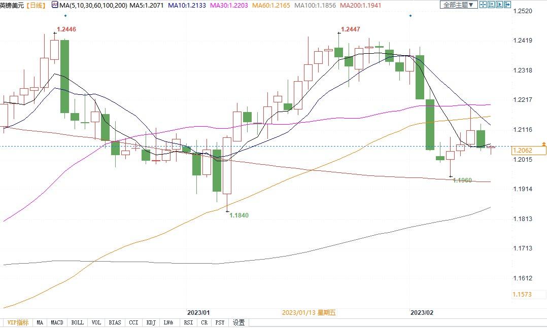 北京时间2月13日16:01,英镑兑美元报1.2063/64