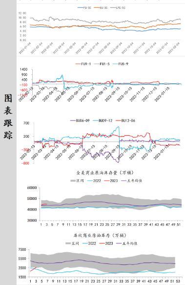 消息面:供需:EIA表示,美国最大页岩油产地二叠纪盆地,页岩油产量预计增加7.5万桶/日,达到936万桶/日;市场预计上周美国原油库存将增加50万桶;杰伊汉港口周一恢复运营;消息称美国计划出售2600万桶战略原油储备,抛储时间为4-6月。能源:俄罗斯副总理表示,2022年俄罗斯石油出口总量达到2.42亿吨,增幅为7.6%,2022年俄罗斯原油总产量为5.35亿吨,同比增长2%。