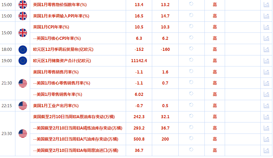 通胀报告公布后,美元最初全面下跌,但随着美债收益率上升,美元重新站稳了脚跟。数据显示,美国劳工部的消费者物价指数在12月份增长0.1%后,1月增长了0.5%。月度通胀率部分受到汽油价格上涨的推动,1月汽油价格大涨3.6%。