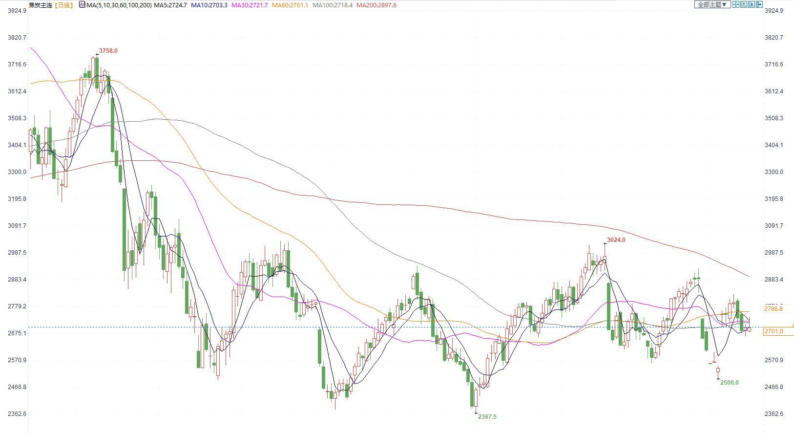 价格:今日05合约上涨后回落,收于2701,港口准一级资源仓单成本2851元/吨。焦炭市场弱稳运行。