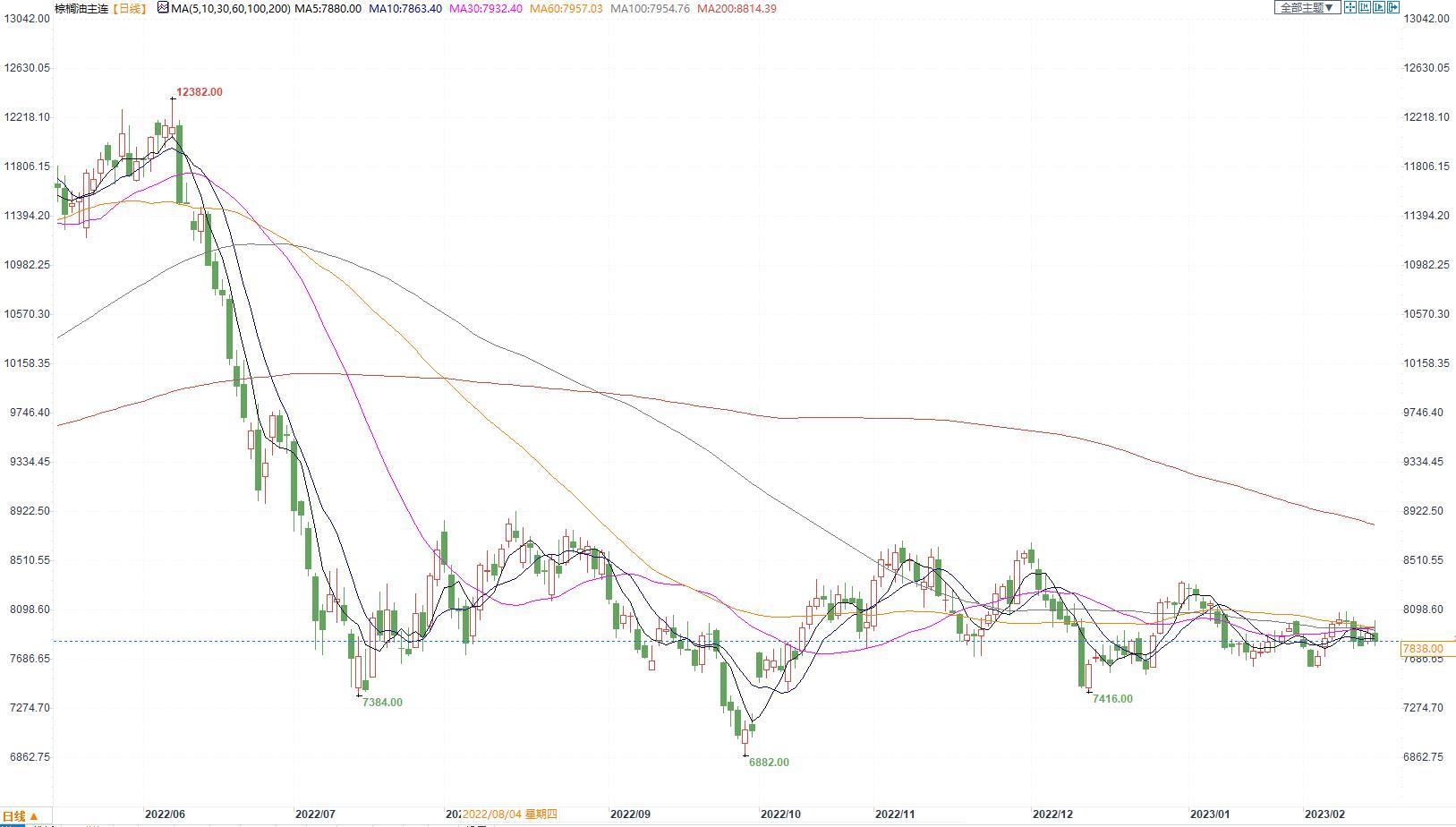 棕榈油2305合约日内跌0.43%,收盘7838元/吨,广州市场棕榈油7880元/吨。