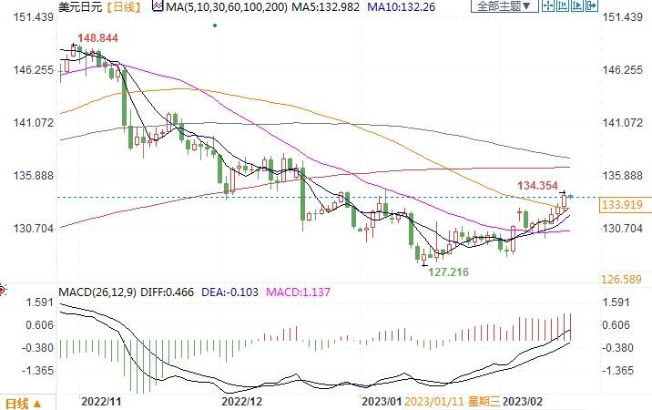 北京时间2月16日14:33 美元兑日元报 133.913/923