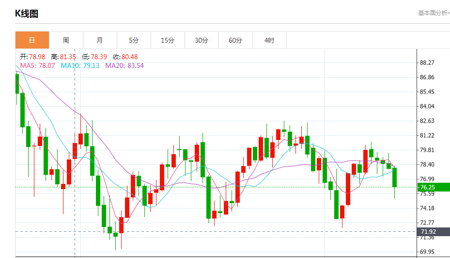 商品收盘情况:布伦特原油期货结算价下跌2.5%,报每桶83.00美元,周线下跌3.9%。美国原油期货结算价下跌2.7%,报每桶76.34美元,周线下跌4.2%。美国期金收于1,850.20美元,下跌0.1%