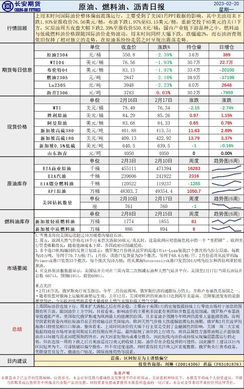 2月20日,长安期货发布原油早评,称美俄政策或进一步影响油价,认为价格将震荡,区间短差为主谨慎偏空。