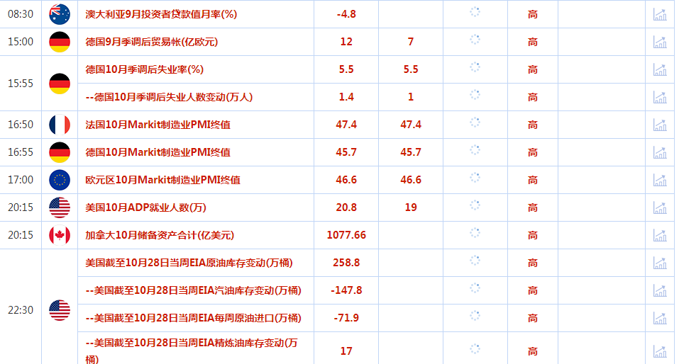 北京时间周三(11月2日)亚市早盘,美元指数交投于111.51附近;美元周二兑主要货币周二下跌,一些人预计美联储将在本周利率决议后发出放缓紧缩步伐的信号,以评估加息对经济的影响,美债收益率从盘中高点下滑;金价上涨近1%;白银上涨超2%,盘中触及三周高位至20.01;油价上涨超2.7%,收复了上一交易日的跌幅,因对需求的乐观。