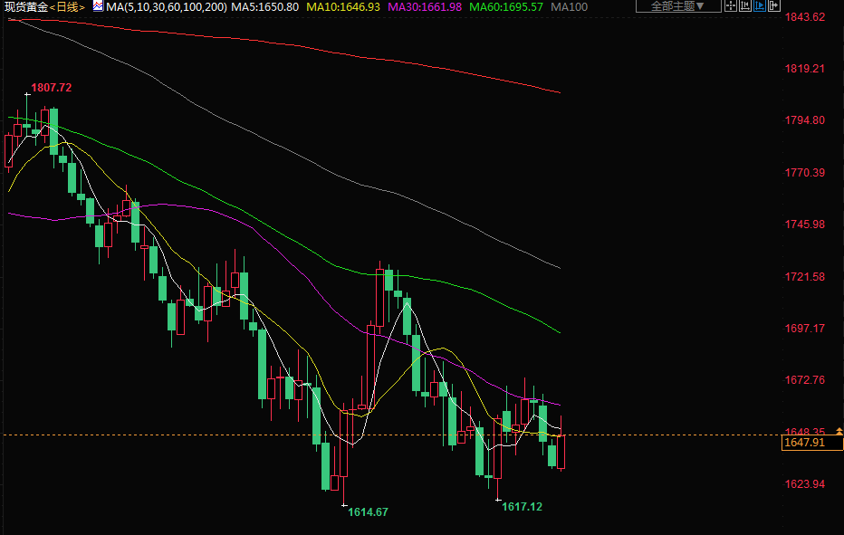 指标10年期美债收益率回落,因猜测美联储本周可能发出放缓政策紧缩步伐的信号,但预计此次会议将再加息75个基点。 由于美联储快速加息,黄金价格自3月升穿每盎司2000美元的水平以来,已经下跌了约21%。