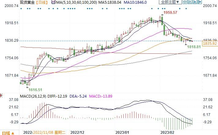 今年2月,黄金市场下跌约100美元,现货黄金最新报每盎司1836.50美元附近。