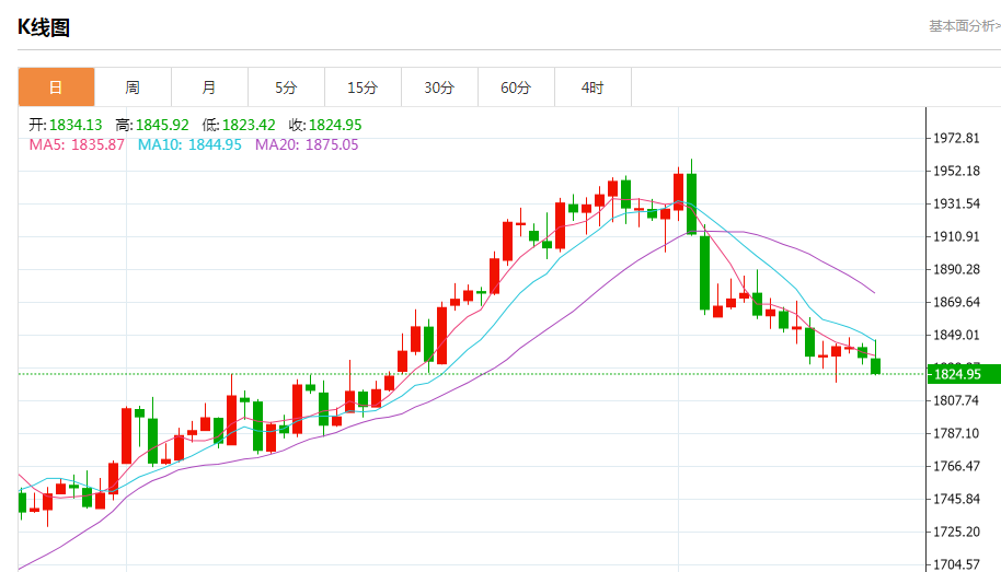 商品收盘情况:布伦特原油期货结算价急跌3%,报每桶80.60美元。美国原油期货重挫3%,结算价报每桶74.05美元,美国期金收低0.1%,报每盎司1841.50美元。