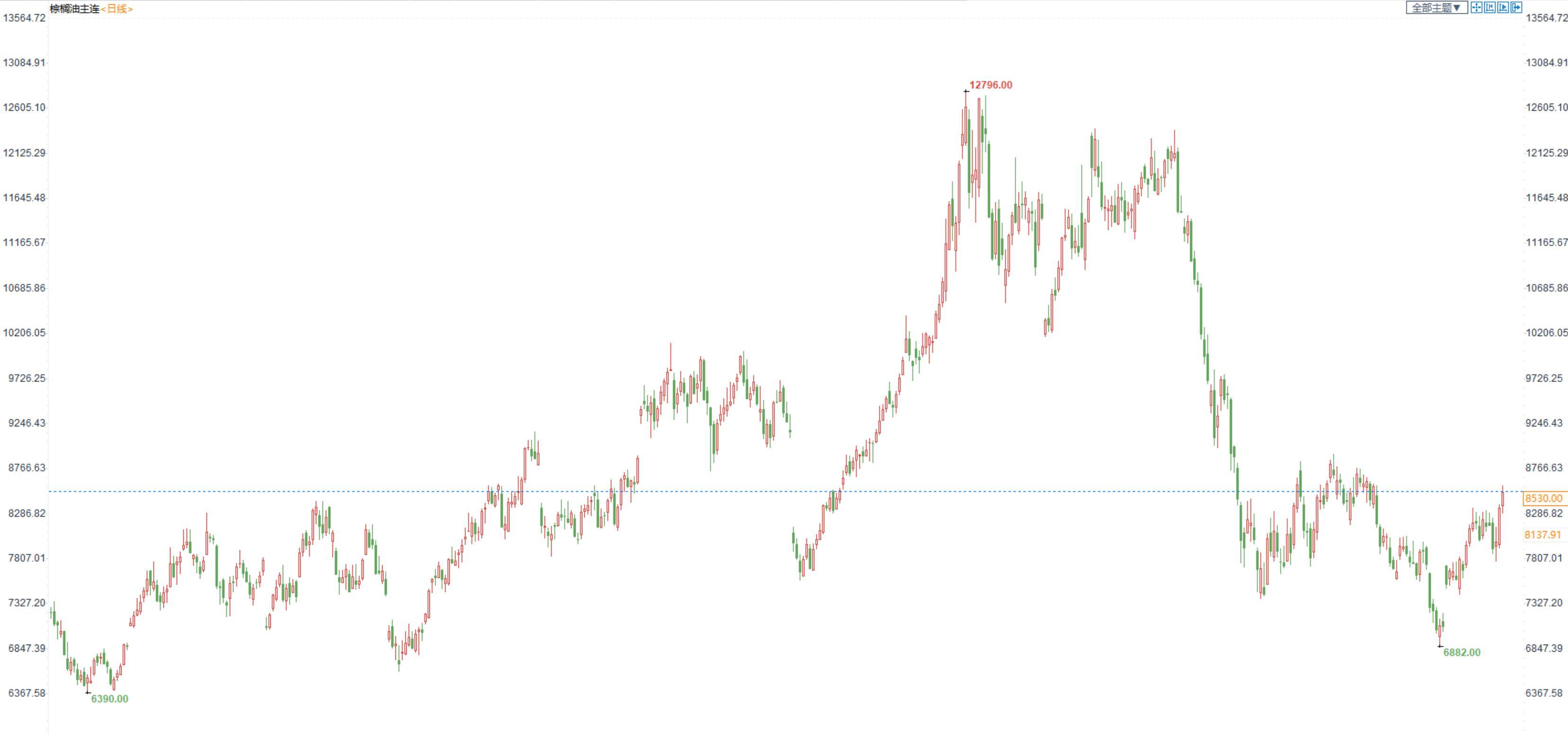 棕榈油2301合约日内涨2.03%,收盘8360元/吨;广州市场棕榈油8630元/吨。