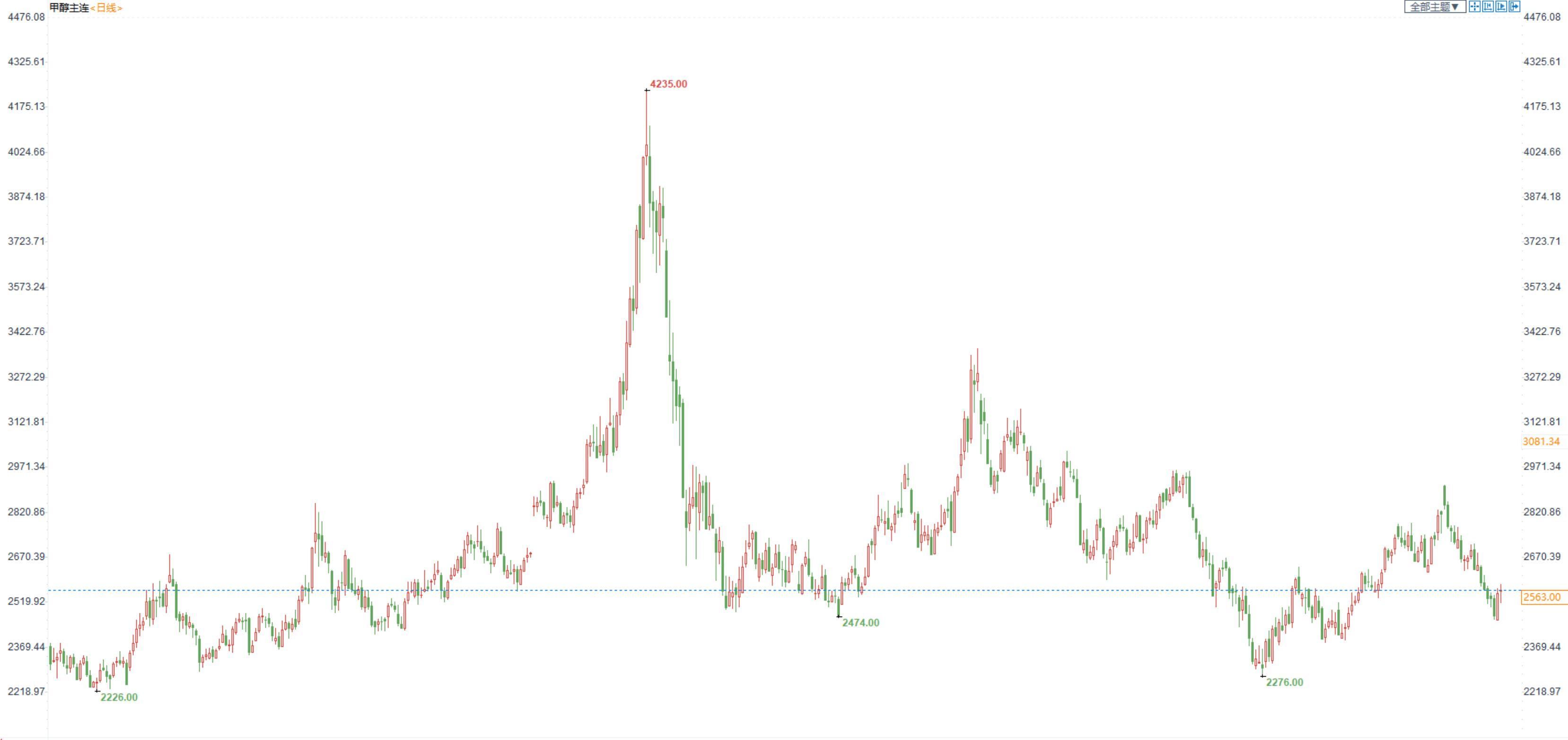 期货市场,甲醇2301合约小幅上涨,收十字星,收盘价2563。江苏现货报价2800-2810,现货在低库存支撑下,强势于期货价格。