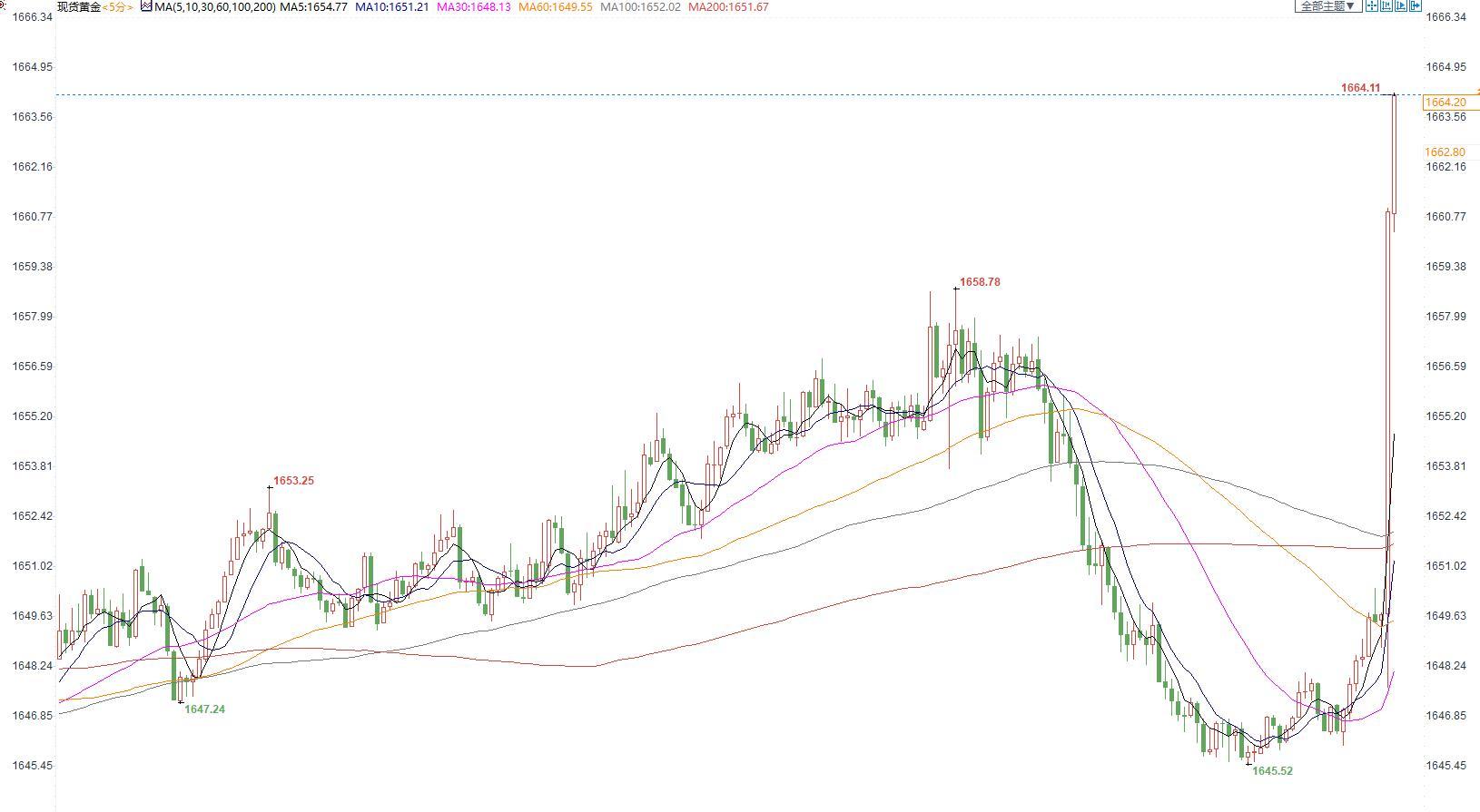 北京时间2:20,现货黄金报1663.33美元/盎司