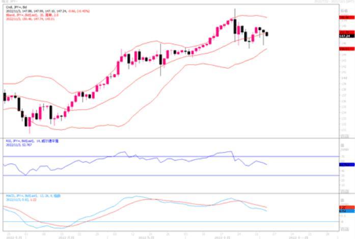 在英国央行议息前,市场氛围相对谨慎,目前市场预期英国央行将在周四大幅加息75基点,然后放缓步伐,在12月加息50基点。英国央行的升息力度及市场预期相对较强,因此英镑走势相较欧元更具韧性,但和美联储货币政策的紧缩程度相比,仍稍有不及,因此在美元强势背景下,英镑难以走强,短期而言,英镑继续看震荡。