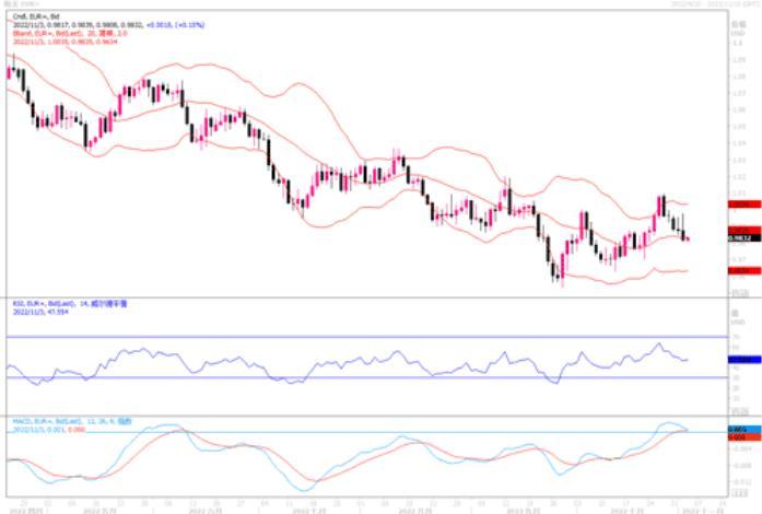 周四凌晨美联储宣布加息75基点,决定将联邦基金目标利率区间上调至3.75%-4.00%,为2008年初以来的最高水平。美联储同时表示未来可能会放慢加息步伐,以评估迄今为止“货币政策累积收紧的程度”,这令市场认为美联储可能在未来放慢加息幅度,最早或在12月结束连续加息75基点的行动,转而支持更小幅度可能是50基点的加息。但随后美联储主席鲍威尔在新闻发布会上表示,现在讨论美联储何时可能暂停加息“为时过早”。受此影响,美元指数走势先跌后升,欧元则表现为先涨后跌,当天欧元开盘0.9873,收盘0.9817,小幅收跌。