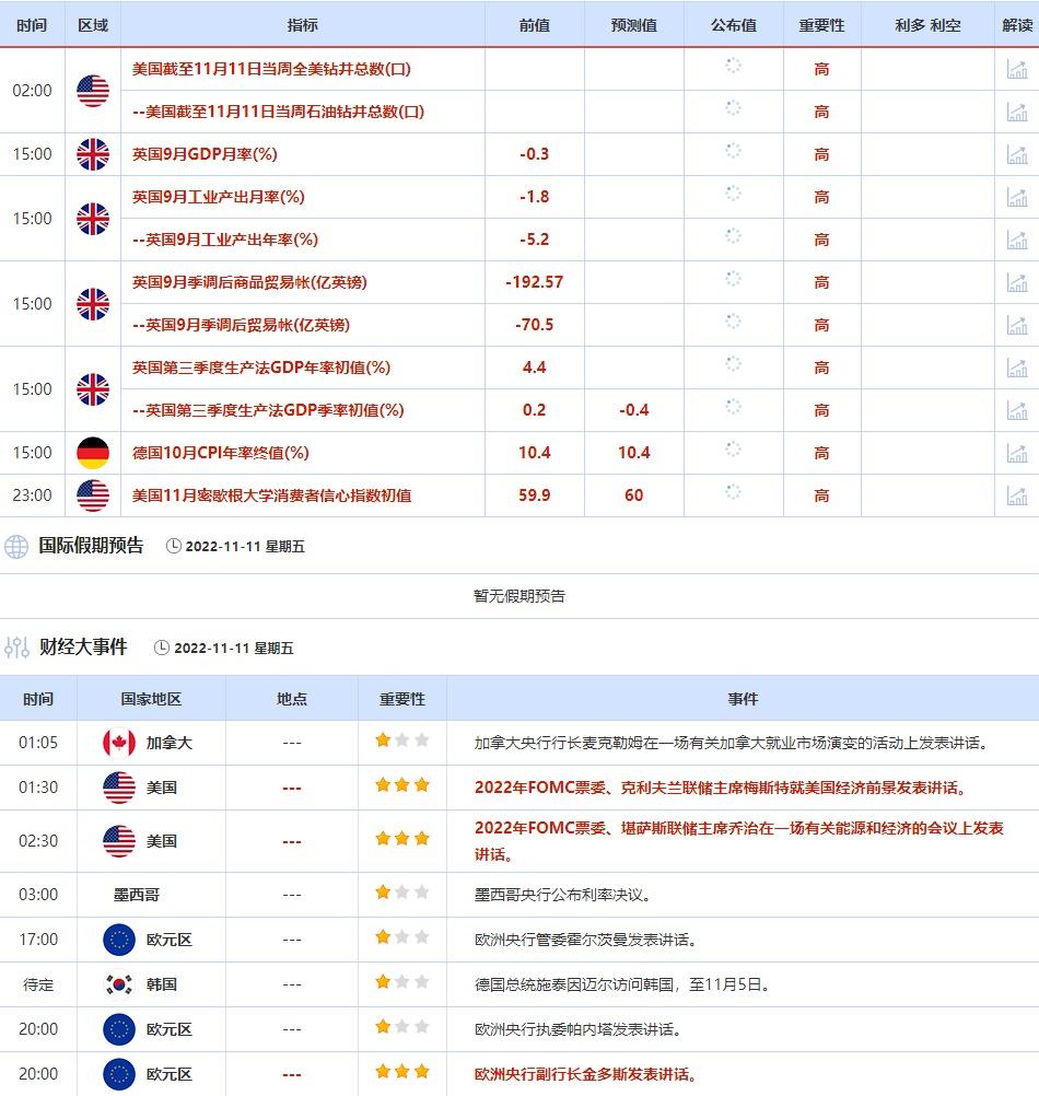 ⑤11月11日(周五)关键字:英国9月GDP, 克利夫兰联储主席梅斯特,欧洲央行副行长金多斯