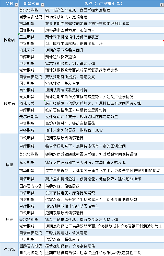 期货公司观点汇总一张图:11月7日黑色系(螺纹钢、焦煤、焦炭、铁矿石、动力煤等)