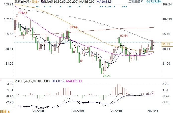 北京时间11月7日10:39 美原油连续 报 91.32美元/桶