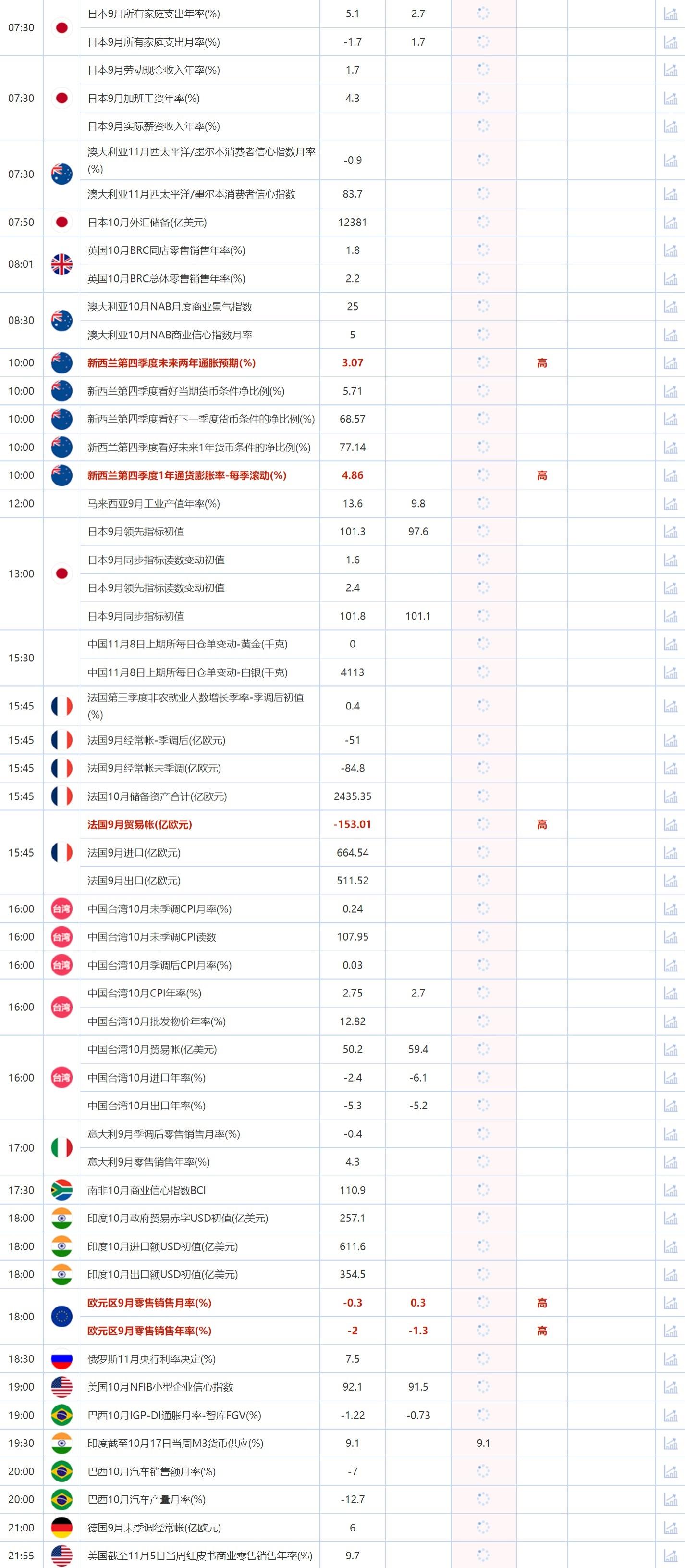11月8日重点数据和大事件前瞻