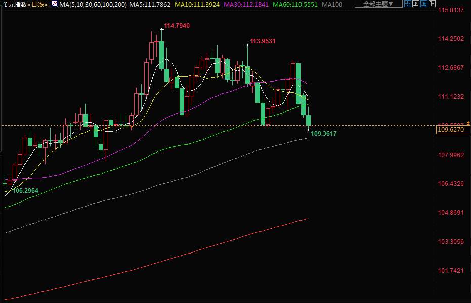 北京时间周三(11月9日)亚市早盘,美元指数交投于109.61附近 ;美元周二下跌,德国国债收益率攀升推动欧元走强,但如果本周稍晚出炉的美国消费者物价指数(CPI)很强劲,可能会扭转美元的跌势,市场正在关注美国期中选举,结果很可能会使华盛顿进入一个国会政府两党分治的时代,金价上涨超过2%,突破每盎司1700美元的关键水平,此前美元和美债收益率下跌,市场有一些技术性买盘。油价下跌超3%,燃料需求的担忧不断加深,同时对美国期中选举结果也感到紧张。