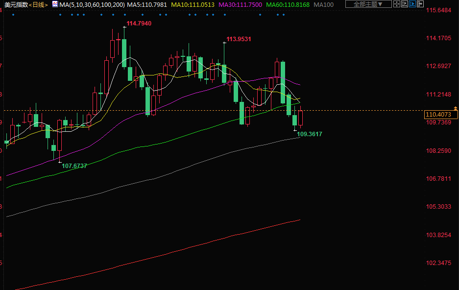北京时间周四(11月10日)亚市早盘,美元指数交投于110.41附近;美元周三走高,因就已经开票数来看(开票还在持续),美国中期选举结果没有显示出一些人预期的共和党大获全胜的“红色浪潮”的证据,使投资者将关注点转向即将到来的通胀数据;金价自逾一个月高位回落;油价下挫超3%,此前行业数据显示,美国原油库存增加幅度超过预期,而且人们担心疫情反扑会打击燃料需求。