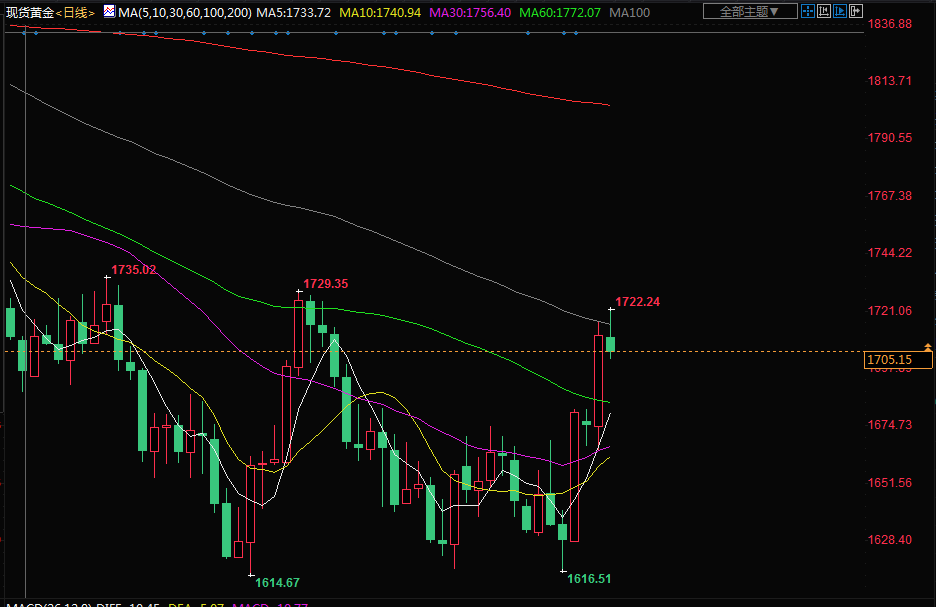 盘中稍早,金价一度触及10月6日以来最高的1722.19美元。在美联储激进加息之后,10月消费者物价指数(CPI)数据将反映美国通胀的最新情况。Blue Line Futures首席市场策略师Phillip Streible表示:“在明天的CPI数据公布前,我对黄金有点戒心。”