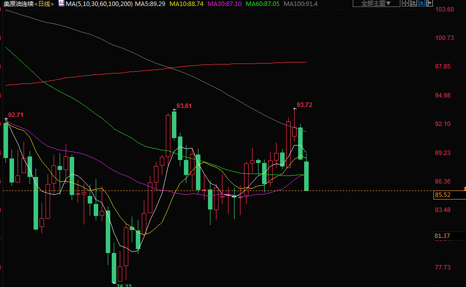 商品收盘情况:布伦特原油期货结算价为每桶92.65美元,下跌2.8%;美国原油期货结算价为每桶85.83美元,下跌3.5%。美国期金结算价报1713.70美元,下跌0.1%。