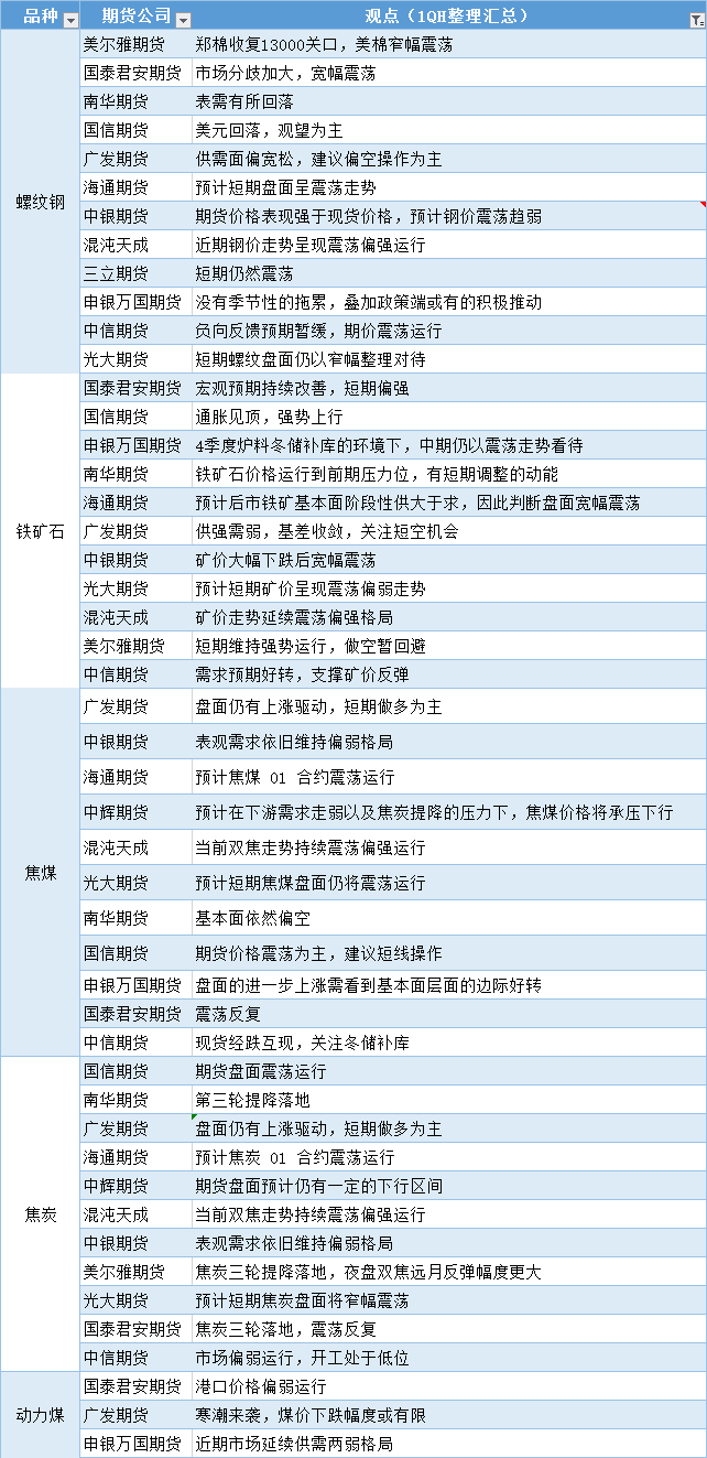 期货公司观点汇总一张图:11月11日黑色系(螺纹钢、焦煤、焦炭、铁矿石、动力煤等)