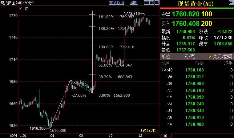 周一(11月14日),国际金价回落,脱离上个交易日触及的三个月高位1772.55美元/盎司,因此前有美联储高级官员警告称,其并未软化抗通胀努力,美元和美债收益率小幅走高。但金市技术面依然看涨,后市上看1785美元。
