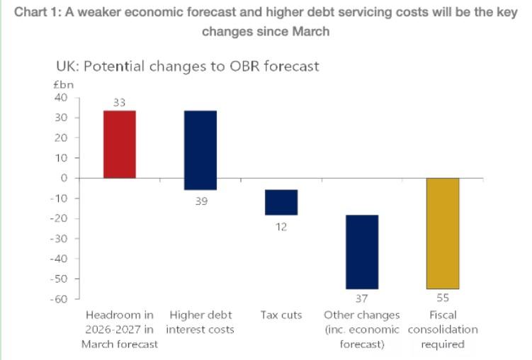 牛津经济研究院表示,本周的秋季财政报告可能标志着英国财政政策从过于宽松转向过于紧缩。该机构首席英国经济学家古德温(Andrew Goodwin)表示:“在我们看来,转向过度紧缩的政策将加深英国可能在2023年经历的衰退。”