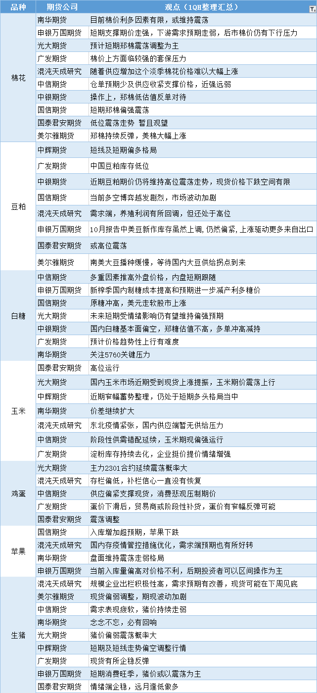 期货公司观点汇总一张图:11月14日农产品(棉花、豆粕、白糖、玉米、鸡蛋、生猪等)