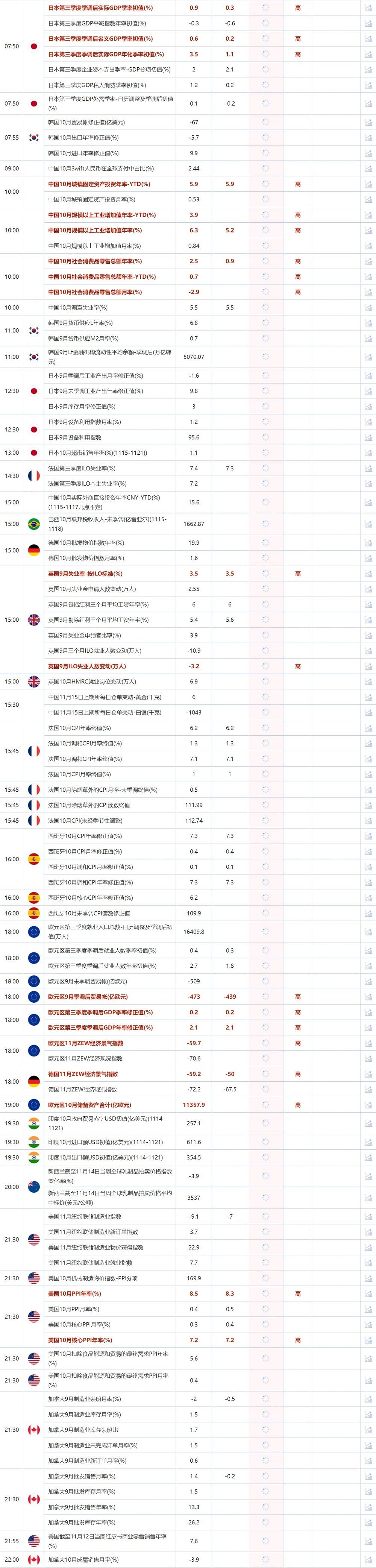 后续及时更新的财历数据请关注:【汇通网11月15日财经日历】