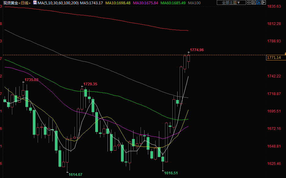 现货白银跳涨1.5%,至每盎司22美元,触及6月9日以来最高。铂金下跌0.3%,至1026美元,脱离上一交易日触及的3月中以来最高。钯金持稳于每盎司2040.64美元。