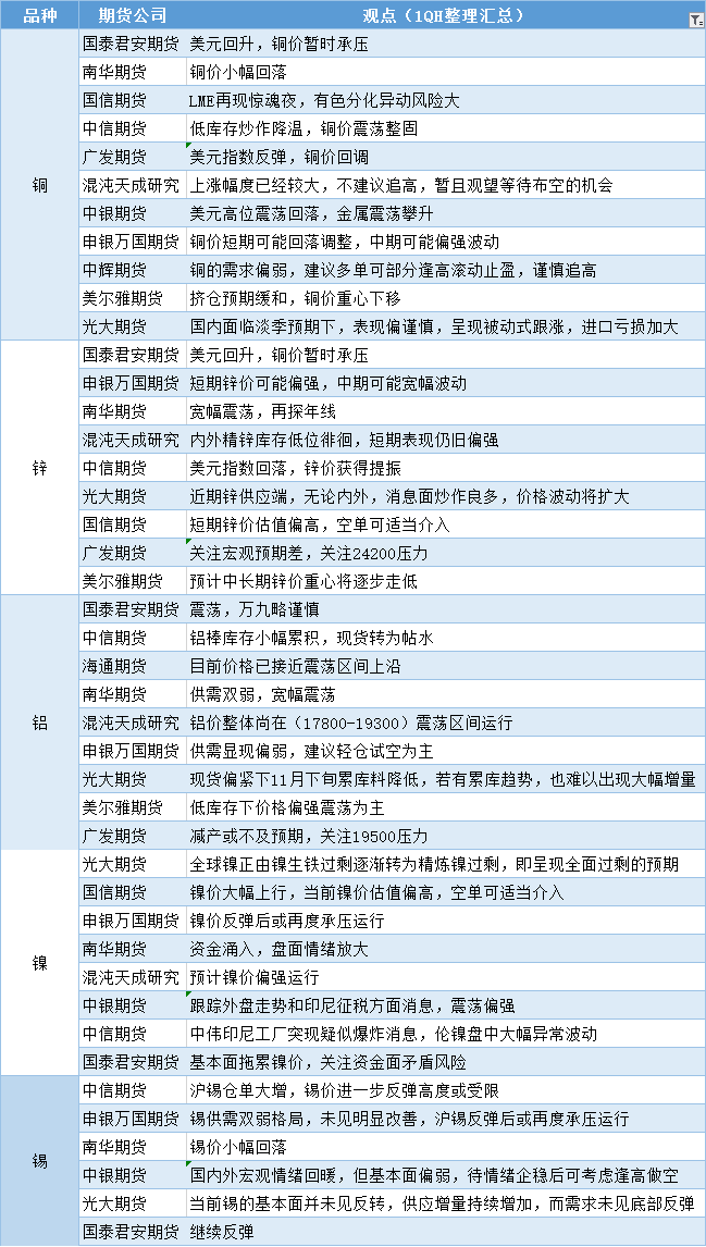 期货公司观点汇总一张图:11月15日有色系(铜、锌、铝、镍、锡等)