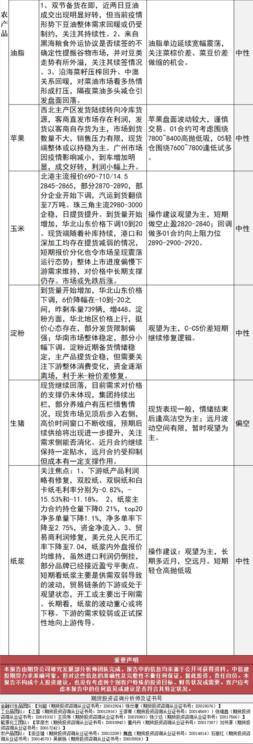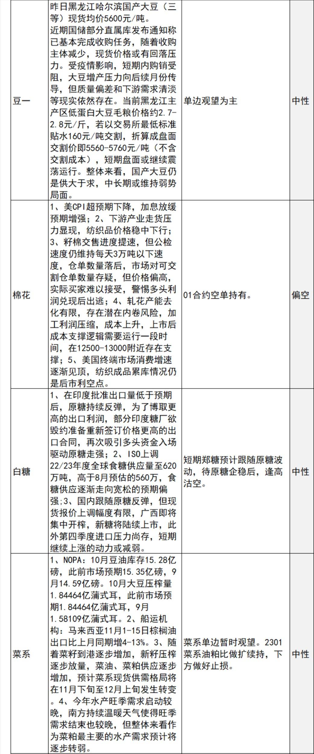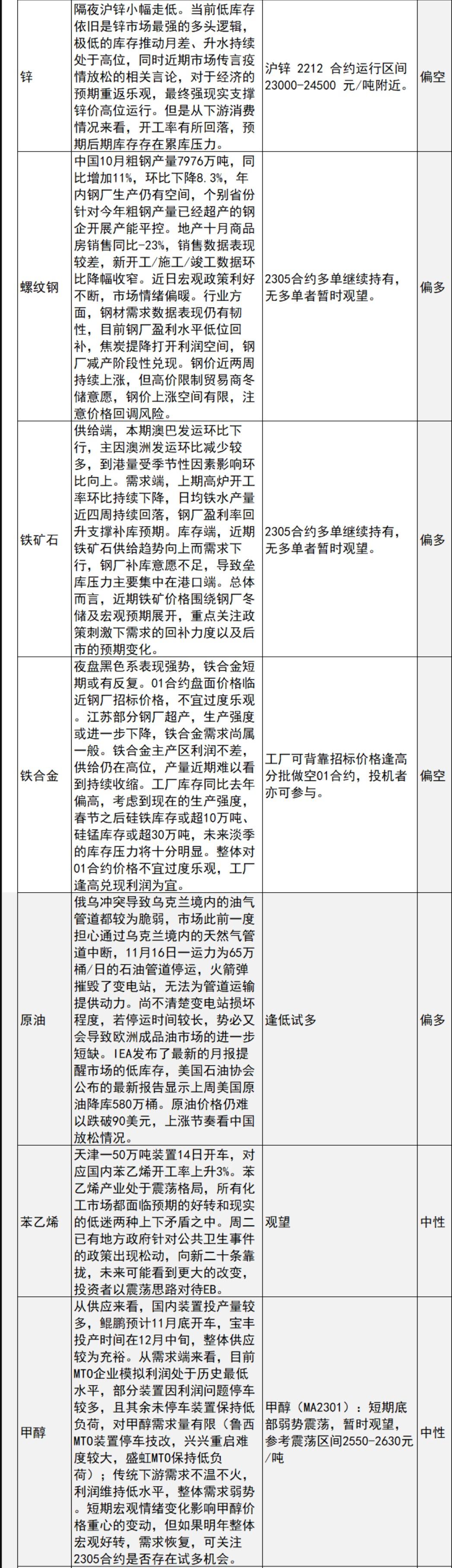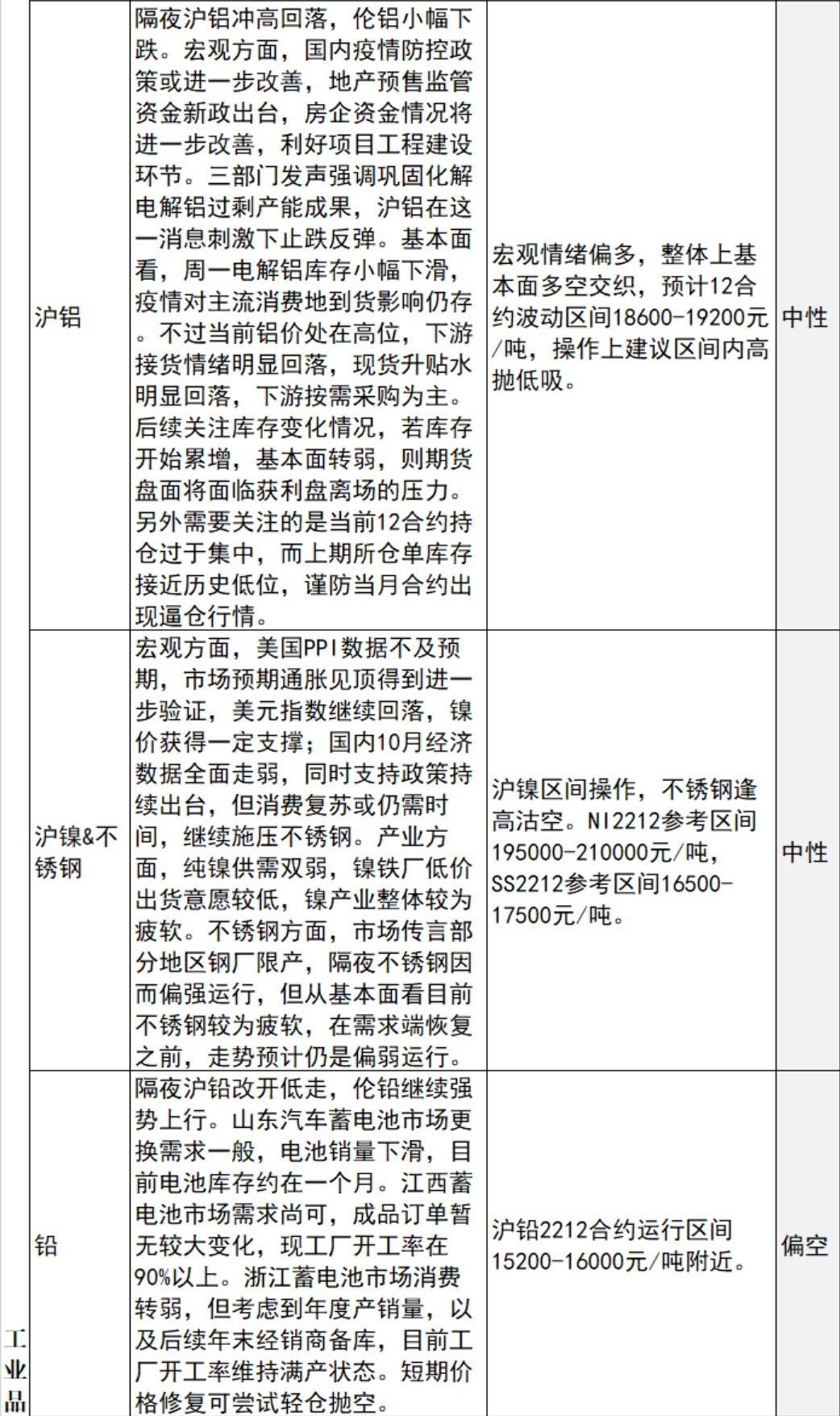 中信建投期货11月16日早间交易策略