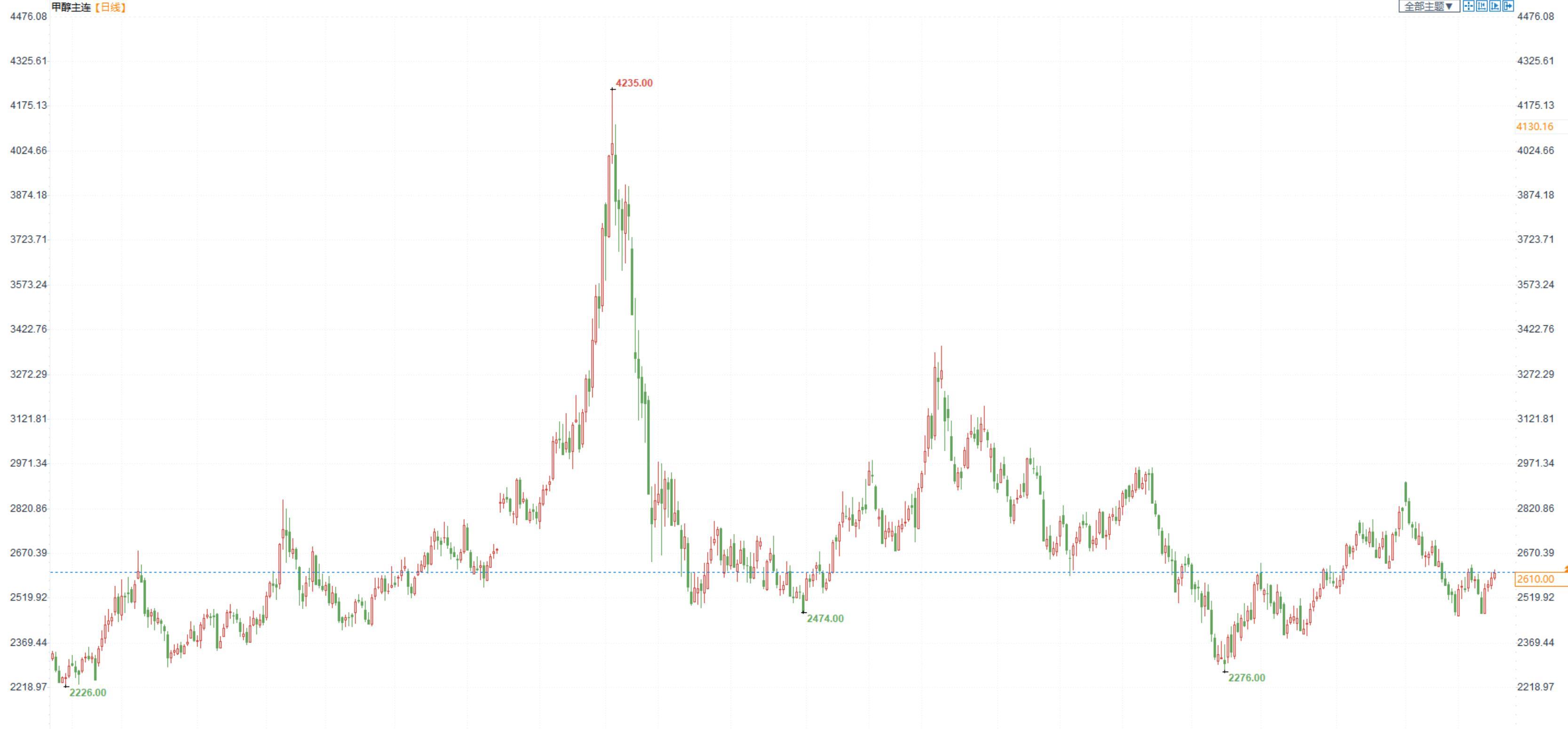 期货市场,甲醇2301合约小幅收涨,收盘价2610。