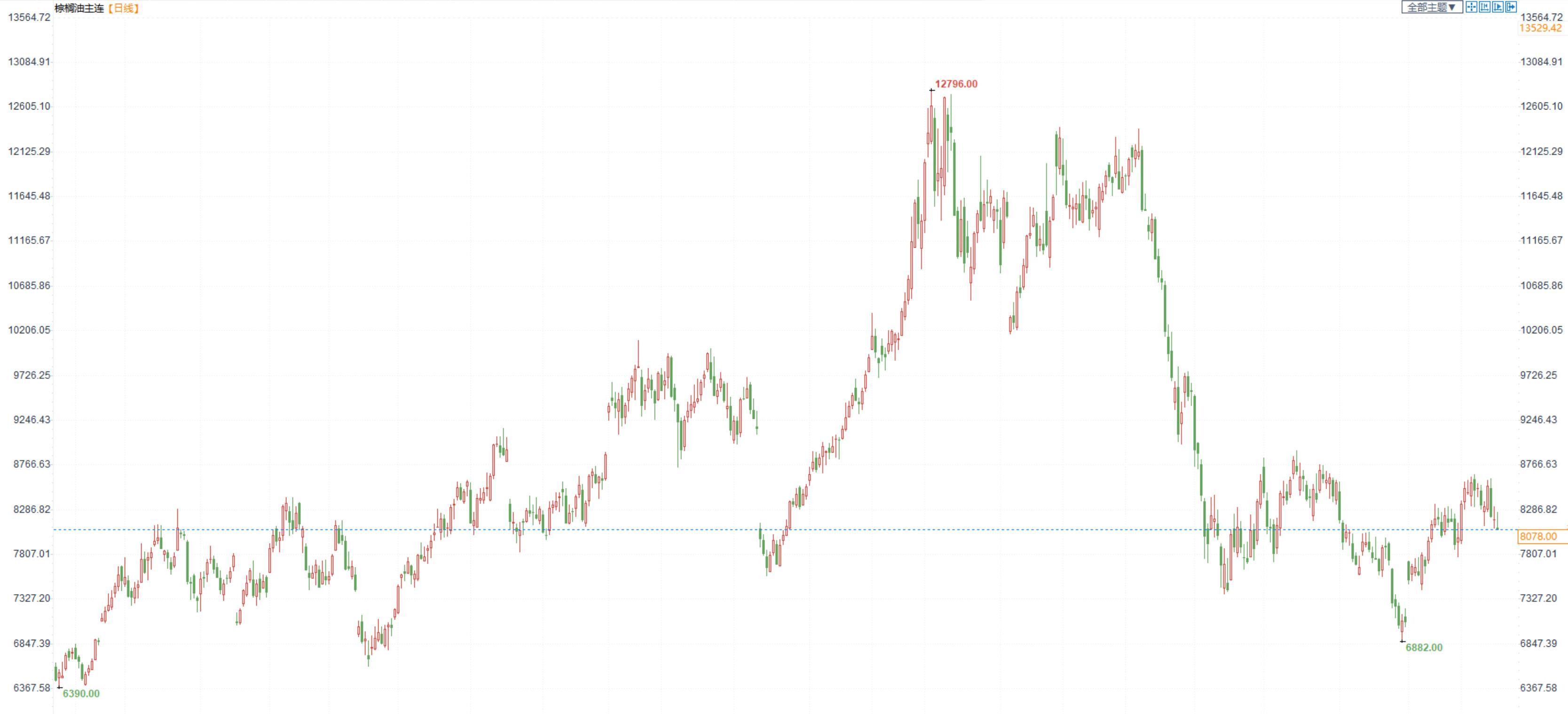 棕榈油2301合约日内跌1.66%,收盘8078元/吨;广州市场棕榈油8330元/吨。