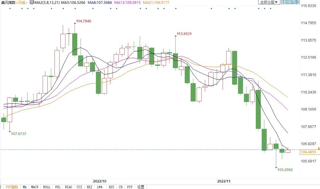 综合以上消息,若美联储在下次会议上如理事预测的那样,将加息幅度放缓至50个基点,美元指数有望得到提振,但反弹幅度恐受限,投资者需对此保持警惕。