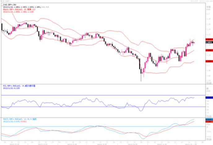 周四(11月17日),英镑兑美元微跌0.46%,报收于1.1865。这主要是投资者对英国财政大臣亨特的预算案感到担忧,其中包括增税和收紧公共开支,以推动通胀降温并重塑英国的经济声誉。有份认为,亨特预算案有缺口,从市场的 角度来看,并那么能打动人。预算案明显欲通过打击消费者来堵住缺口。且目前经济正在下行,还有生活成本危机,他们却在加税,势必影响到英国经济的发展。日线图仍守稳5日均线上方,但随机指标倾向自超买区域回落,关注修正的可能性。4小时图随机指标熊背离。临近周末时段,要继续防范高位回落的风险。上方初步阻力在1.19-1.1958区域,下方初步支撑则在1.1760附近。
