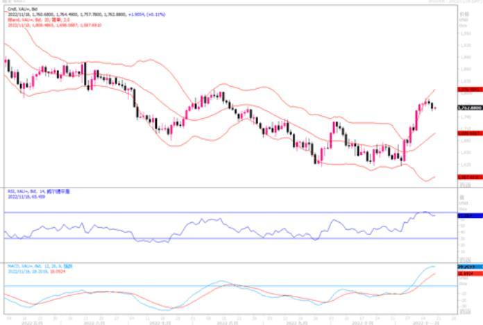 周四(11月17日),现货黄金继续回落,进一步脱离本周创下的三个月高位, 当日现货黄金下跌0.78%,收报于1760美元/盎司。