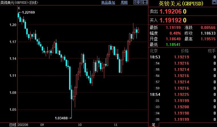 英镑兑美元上涨0.81%至1.1926,盘中创8月中旬以来新高至1.2028,受益于英国薪资数据增长强于预期,有助于抵消疲弱的英国就业数据。但新的财政紧缩措施料削弱英国经济前景,英国是七国集团(G7)中唯一经济规模仍低于疫情前的国家。