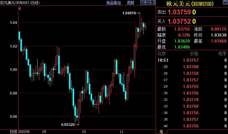 欧元兑美元上涨0.21%至1.0375,盘中创7月1日以来新高至1.0479。市场对美联储政策可能转向的重新定价,已成为近两周欧元兑美元大幅上涨的唯一原因。