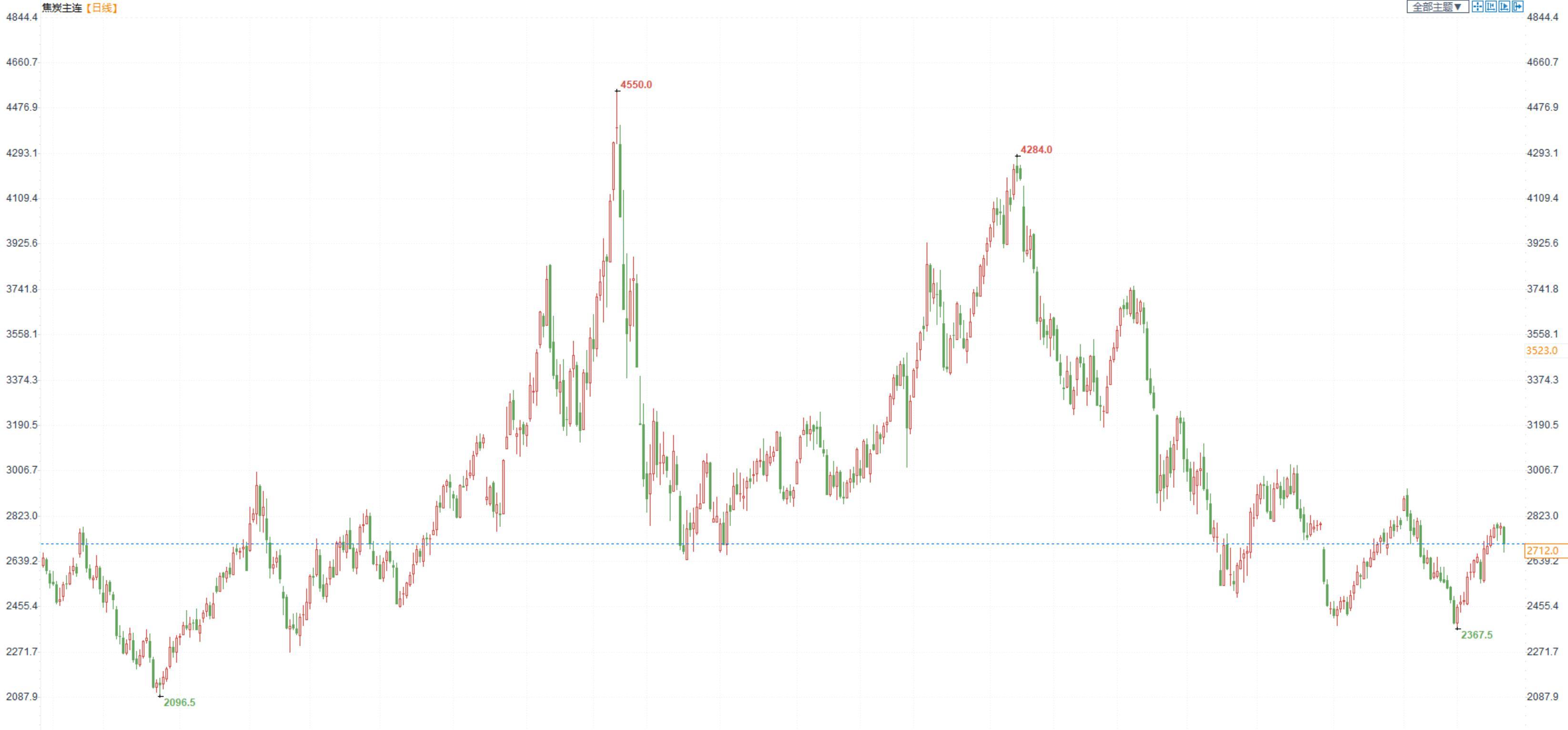 价格:今日01合约跌2.16%,收于2712,港口准一级焦炭仓单成本;河北某大型焦企正式提涨第一轮100元/吨。