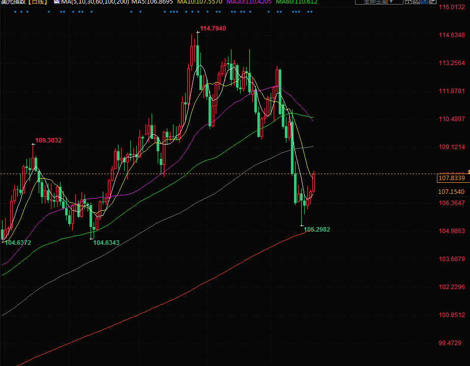 北京时间周二(11月22日)亚市早盘,美元指数交投于107.80附近;美元兑大多数主要货币周一上涨,收复了近期的失地,因为疫情加剧了对全球经济前景的担忧,并使交易商回避风险较高货币,提振了美元,在压力时期,美元被视为安全的避风港;金价下滑至逾一周最低,跌幅超过1%,因为美元扩大涨幅,而市场关注点转向美联储将公布的11月会议记录;油价从早盘的跌势中回升,此前沙特阿拉伯否认其正在与OPEC及其盟友讨论增加石油供应的报道。
