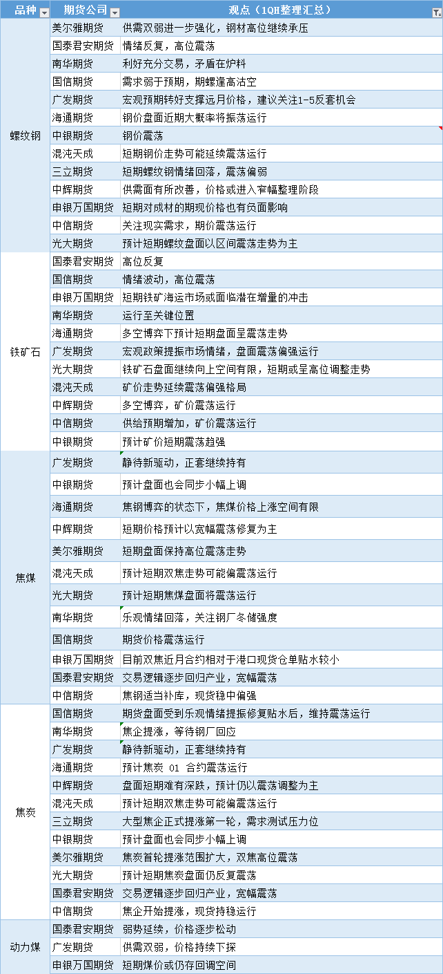 期货公司观点汇总一张图:11月22日黑色系(螺纹钢、焦煤、焦炭、铁矿石、动力煤等)