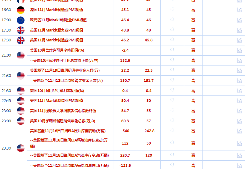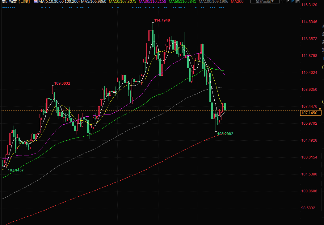 北京时间周三(11月23日)亚市早盘,美元指数交投于107.16附近;周二美元回落,回吐了上一交易日的部分涨幅,因为投资者提振了对风险较高货币的需求,股市、大宗商品和风险较高货币大多走强,对全球经济前景的担忧增加。;金价持于上一交易日触及的低位上方,美元和指标美债收益率回落与股市上涨基本相抵,投资者在等待有关美联储货币政策路径的线索。油价周二上涨超1%,此前全球最大石油出口国沙特表示OPEC+坚持减产,并可能采取进一步措施平衡市场支撑油价。