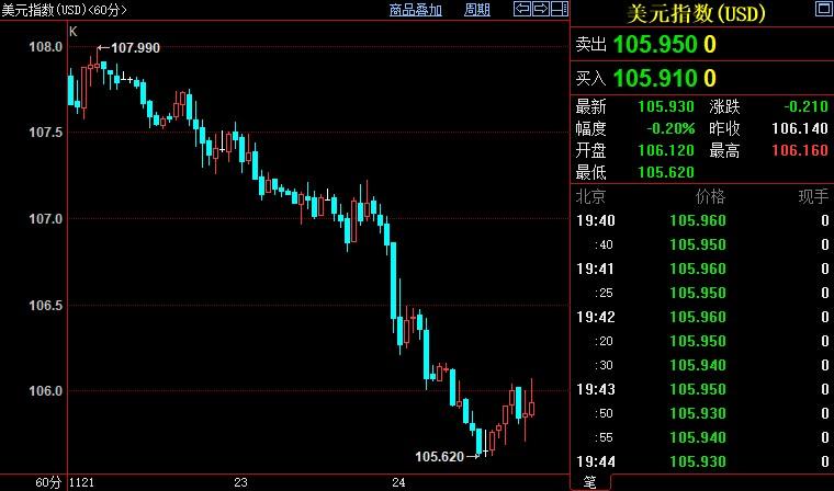 北京时间19:44,现货黄金上涨0.49%至1757.81美元/盎司;COMEX期金主力合约上涨0.73%至1758.4美元/盎司;美元指数下跌0.19%至105.934。